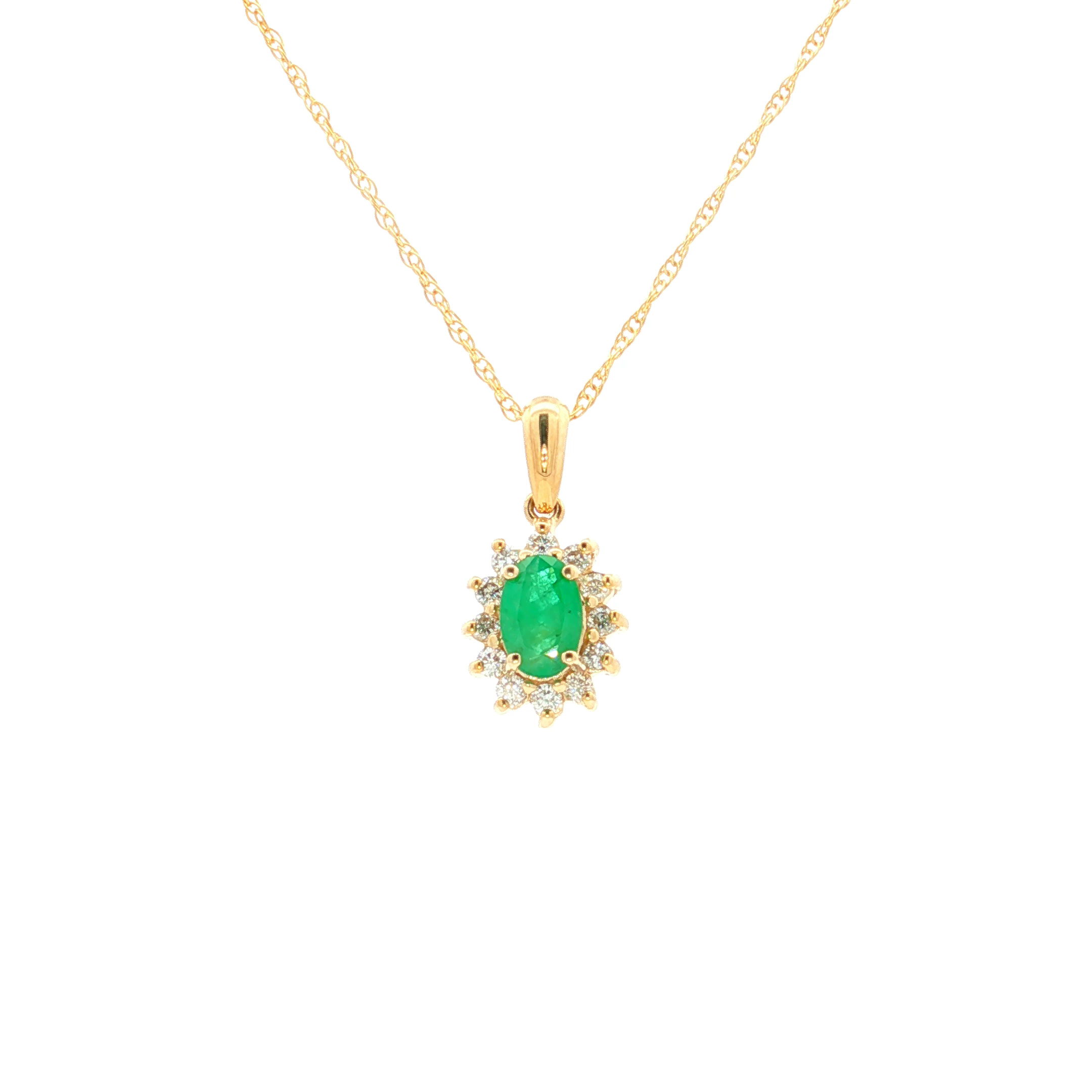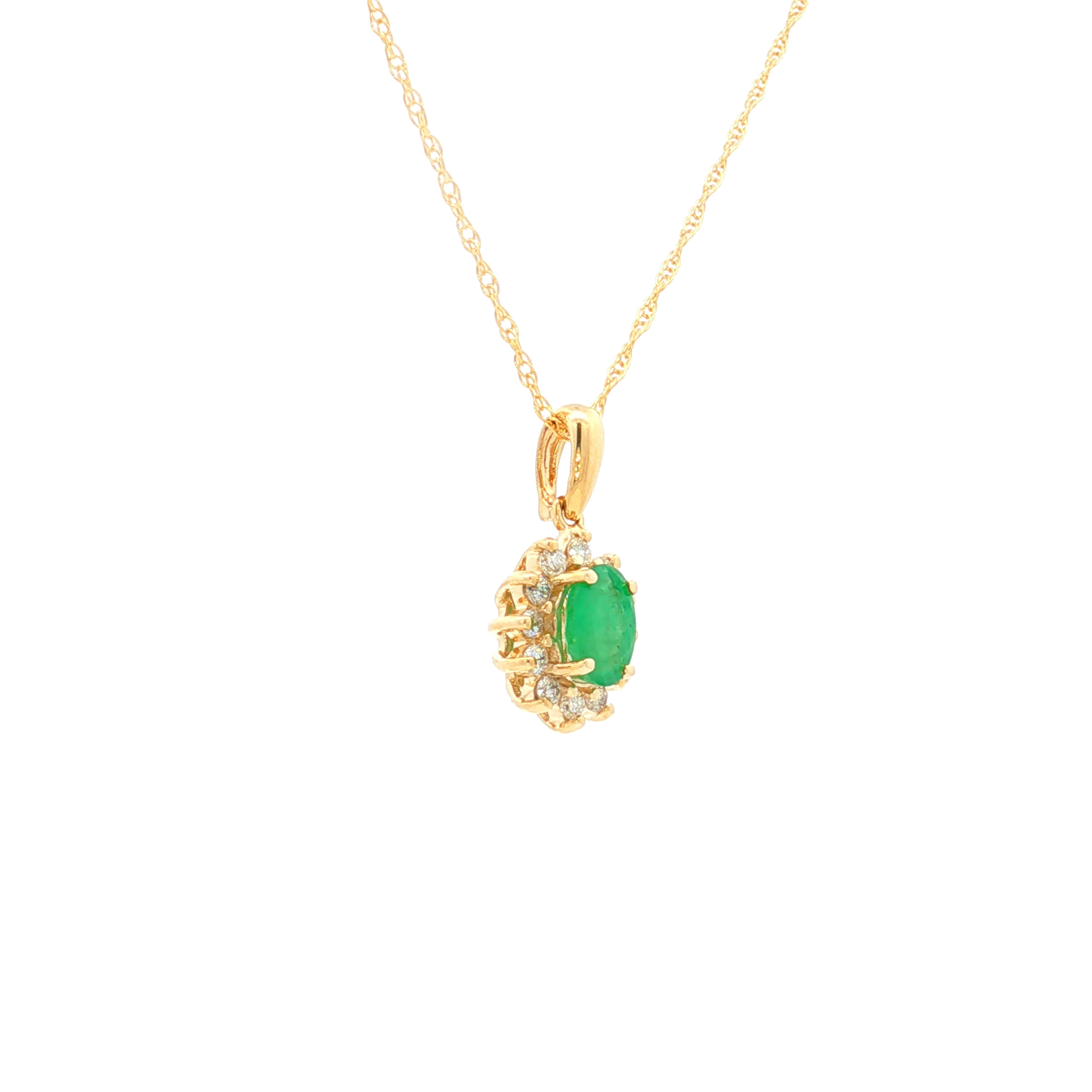Yellow Gold Charm Necklace with Cabochon Emerald .40 Pendant 14K .17 TDW