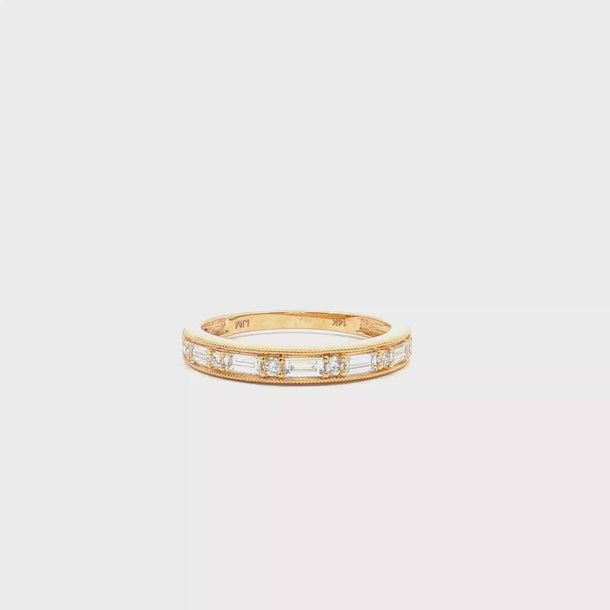 Yellow Gold Band Ring with Baguette Cut Diamonds