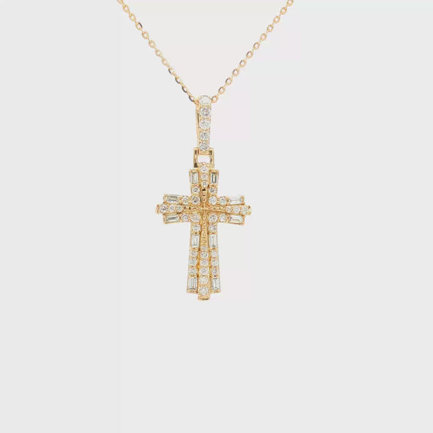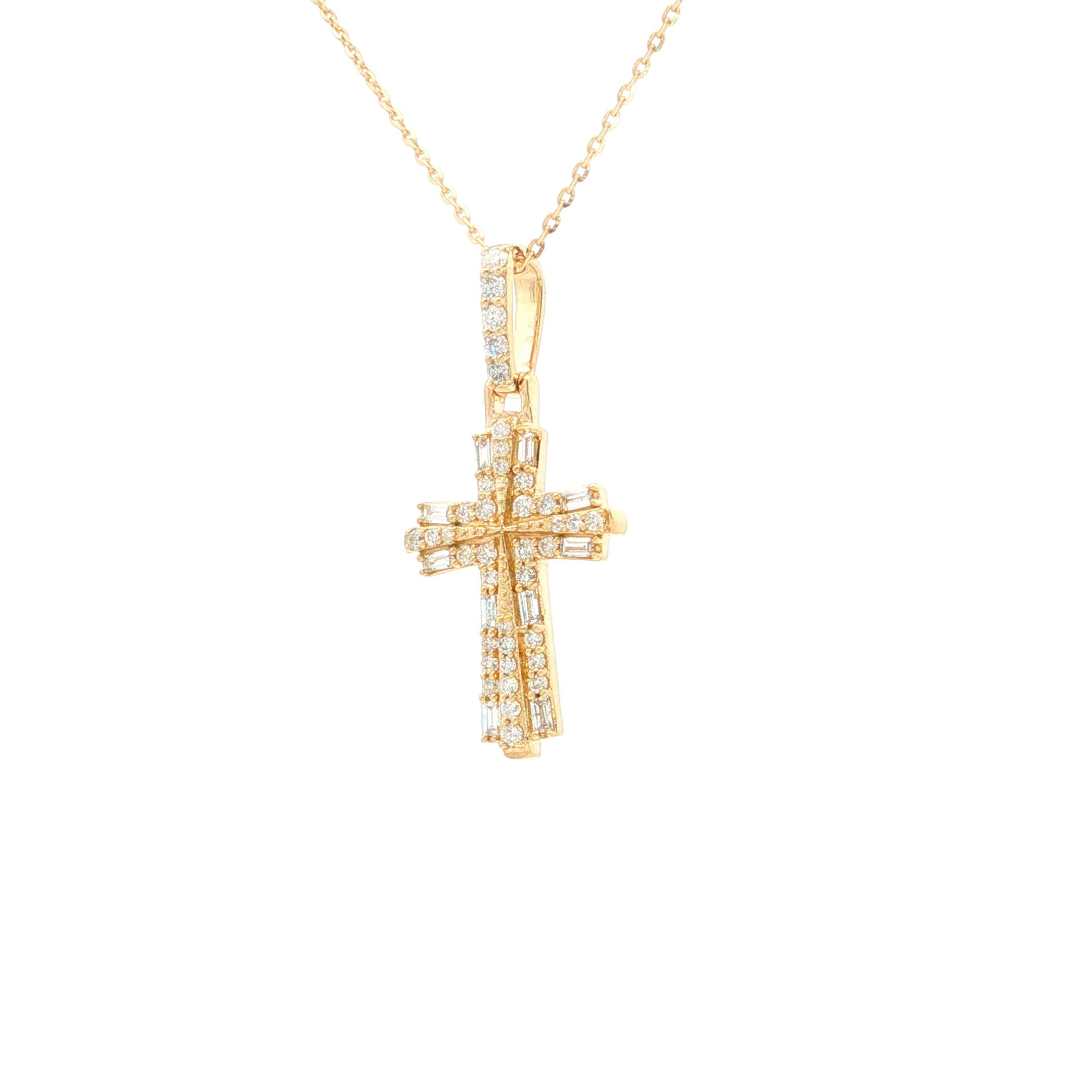 Embrace timeless elegance with this yellow gold charm necklace, showcasing a meticulously crafted cross pendant. Adorned with brilliant-cut round diamonds, this necklace emanates sophistication and grace. The pendant's design reflects refined artistry, making it a perfect statement piece for any occasion. Its high quality make featuring transparent diamond is sure to captivate.
