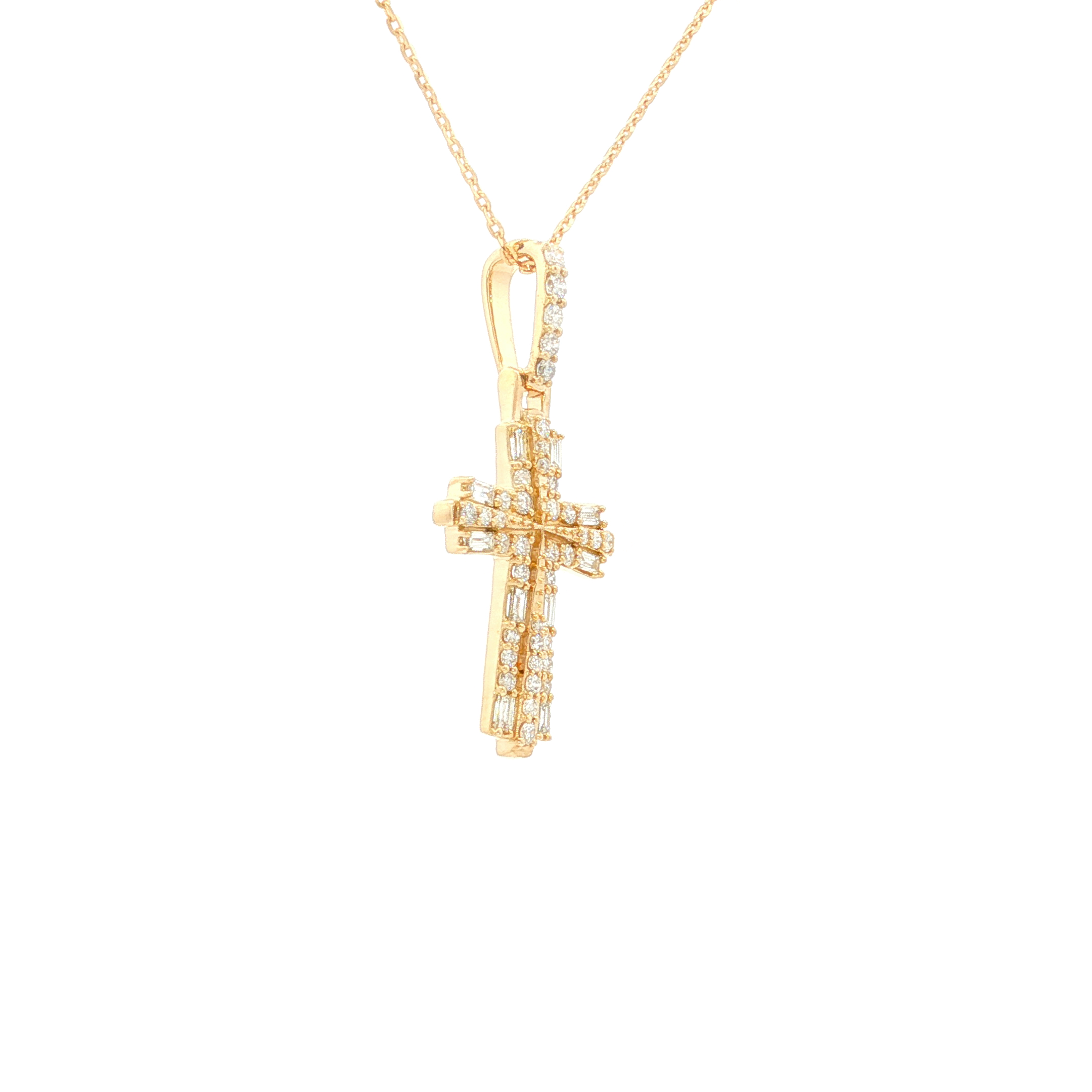 Yellow Gold Diamond Cross Charm Necklace 14K .35 TDW