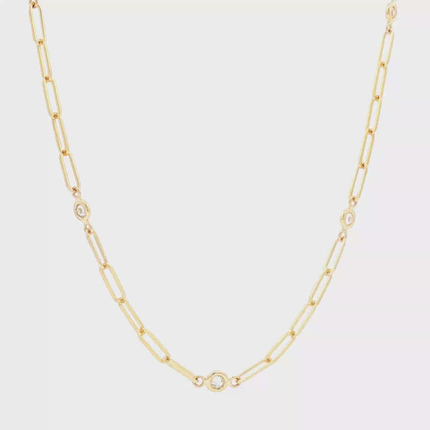 Elevate your style with this exquisite yellow gold chain necklace. Featuring a series of brilliant-cut round diamonds set at intervals along the chain, this piece adds a touch of subtle sparkle to any ensemble. Its classic design makes it perfect for both everyday wear and special occasions, bringing sophistication to your look.