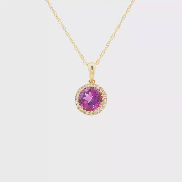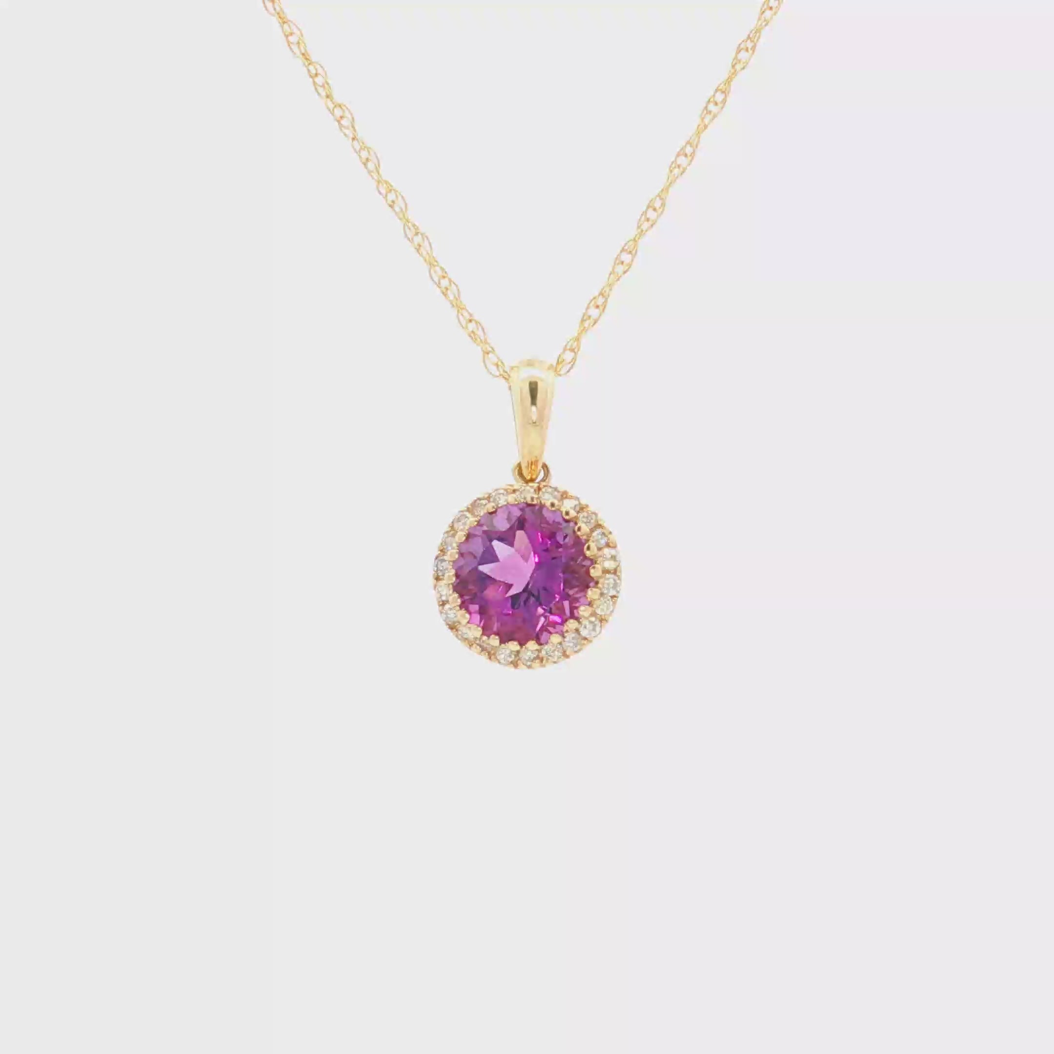 Yellow Gold Charm Necklace with Round-Cut Amethyst 1.04 Gemstone 14K .10 TDW