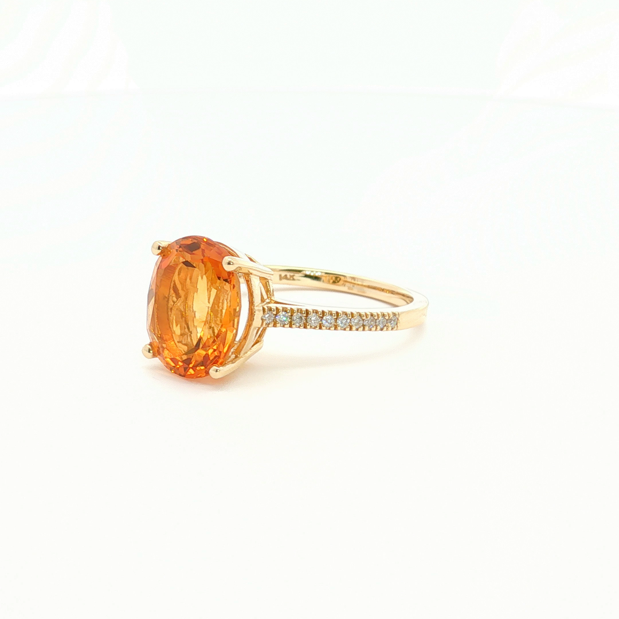 Indulge in the radiant allure of this cocktail ring, featuring a mesmerizing orange citrine gemstone. The oval brilliant cut enhances the stone's natural brilliance and fire. Set in a lustrous yellow gold band, this statement piece exudes sophistication and glamour, making it a must have addition to any fine jewelry collection.